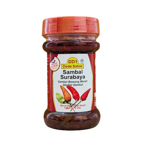 Experience the vibrant, fiery flavor of East Java with Sambal Surabaya by DD1 Dede Satoe. With the texture of homemade hand-ground sambal, free from MSG and artificial coloring. Using high-quality ingredients incorporated into the flavors of the Indonesian archipelago. Available in medium and extra spicy level; as well as green chilli variant.